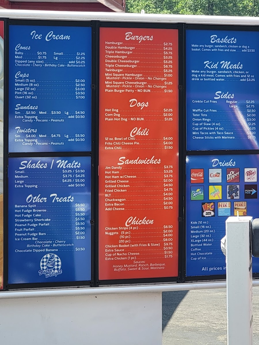 The menu at Dairy Delight offers a straightforward selection of classic fast food favorites and comforting treats, perfect for casual meals any day of the week. Think familiar, satisfying options like hamburgers and fries, chicken tender baskets, and simple sandwiches that invite relaxed, easy dining.